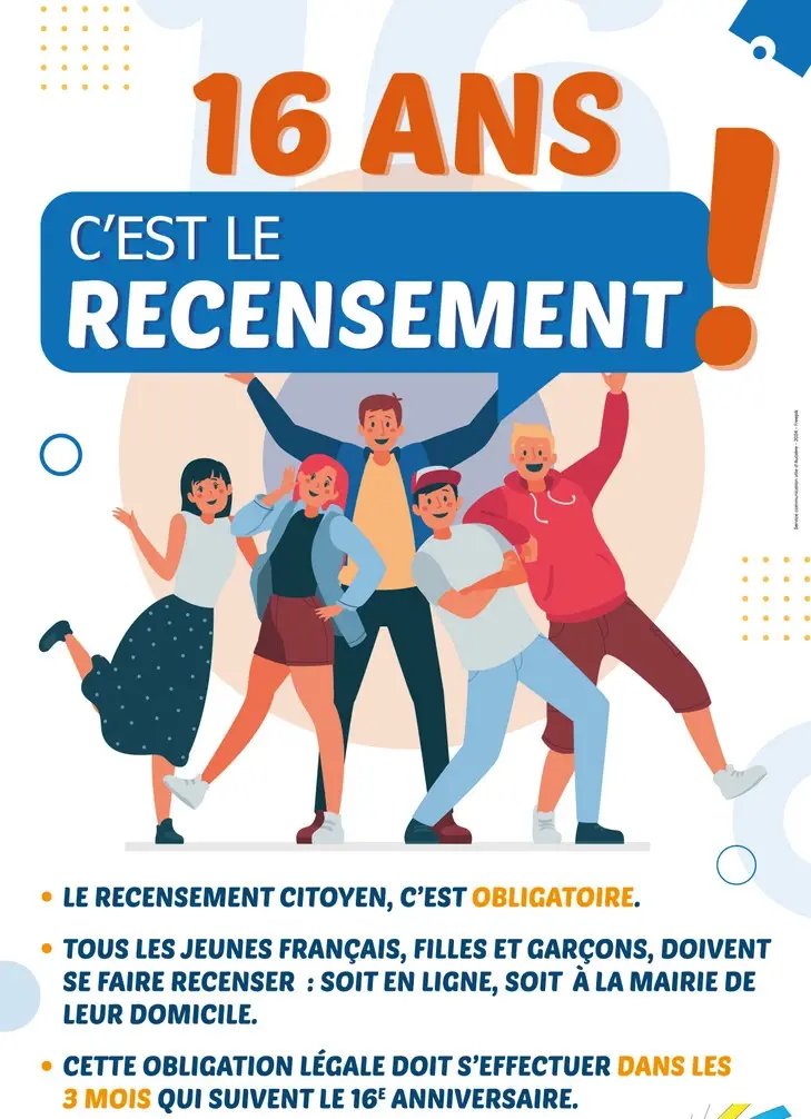 RAPPEL : RECENSEMENT CITOYEN POUR LES JEUNES DE 16 ANS