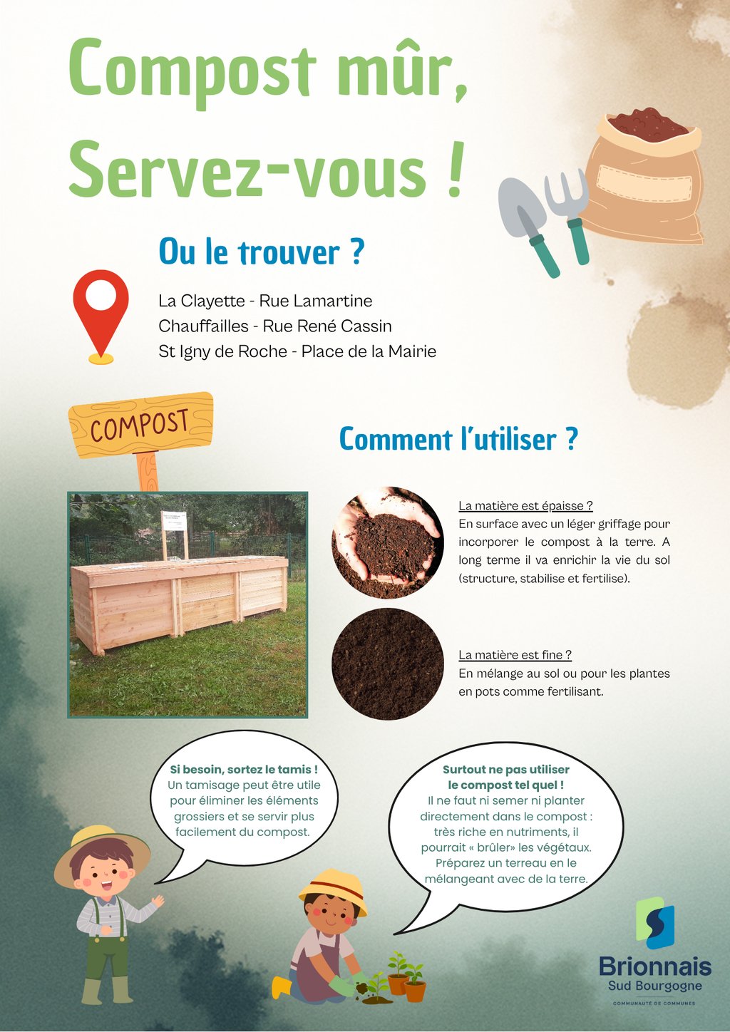 Du compost mûr est à votre disposition, n’hésitez pas à venir vous servir ! L’utilisation du compost au jardin permet d’enrichir la terre, et évite l’utilisation d’engrais industriel. De plus, ce compost produit sur place permet de favoriser l’économie circulaire.