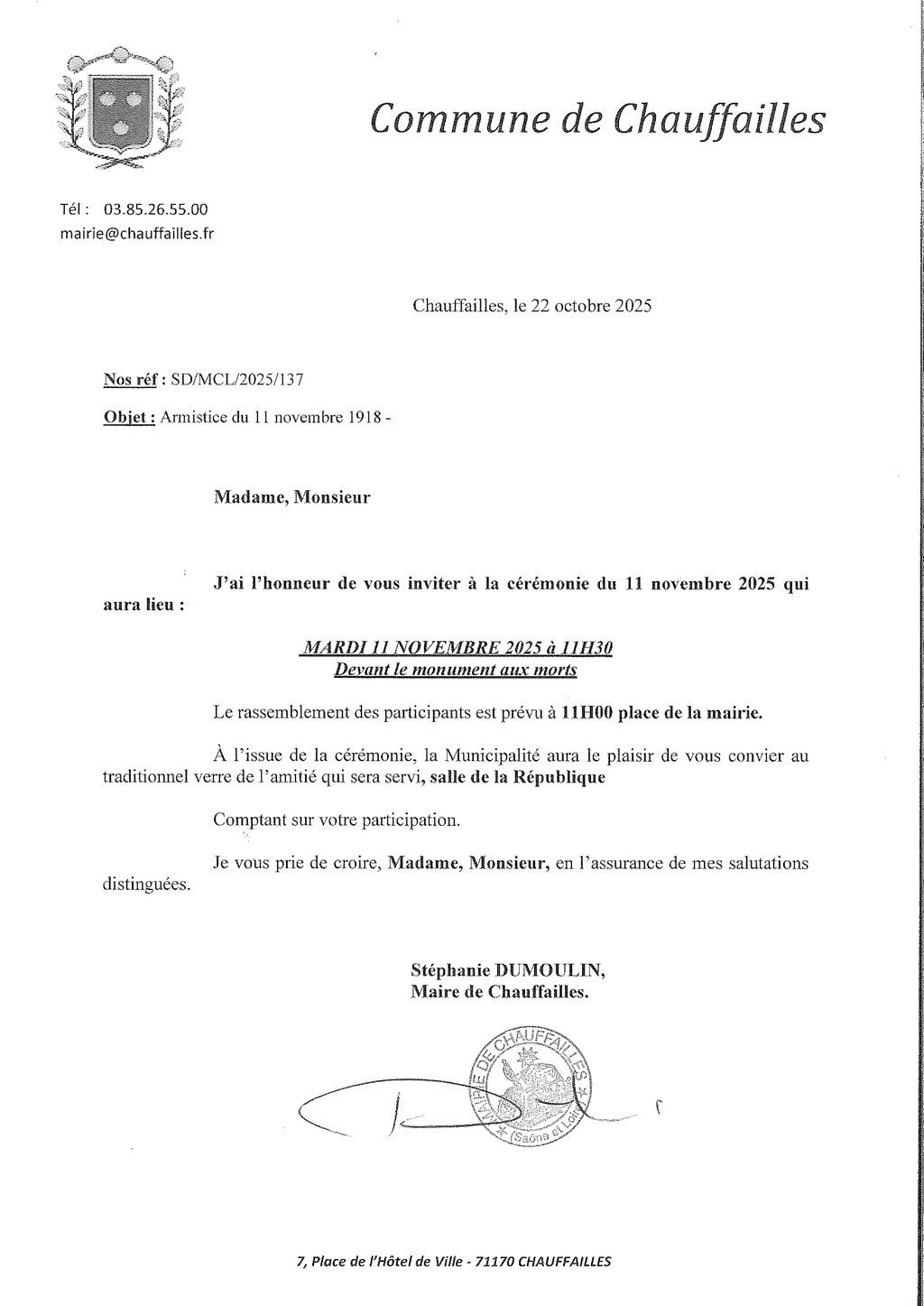 Nous avons l'honneur de vous inviter à la cérémonie du 11 novembre 2025 qui aura lieu :