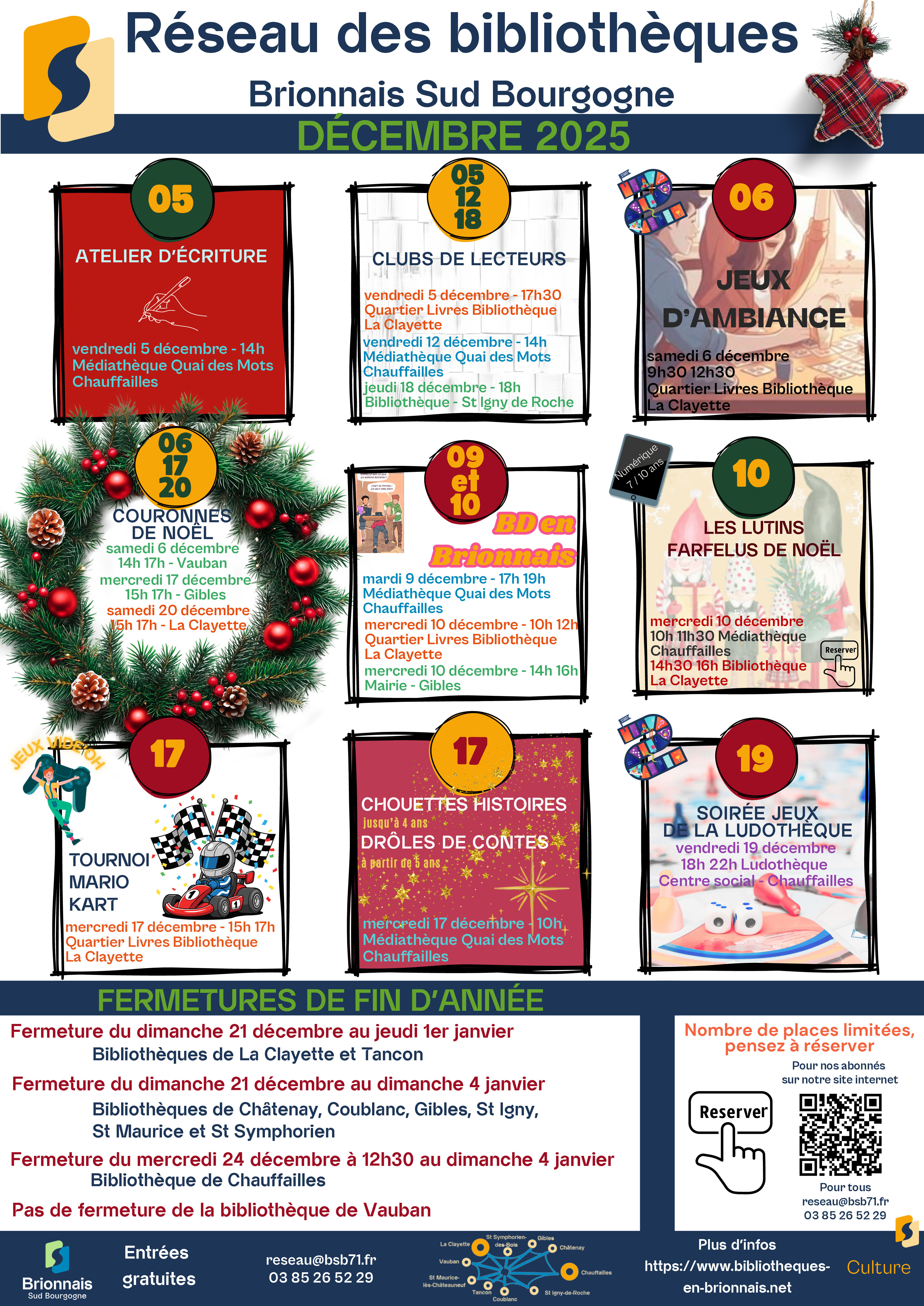 Vous trouverez ci-joint le programme culturel Brionnais Sud Bourgogne du mois de décembre.