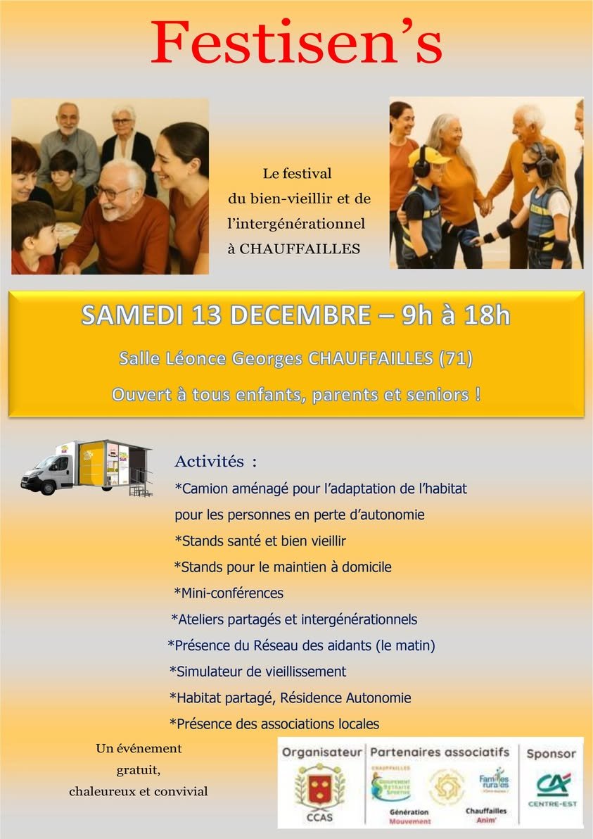Pour rappel, venez découvrir demain samedi 13 décembre : le FESTISEN'S, le premier festival du bien vieillir et de l'intergénérationnel.