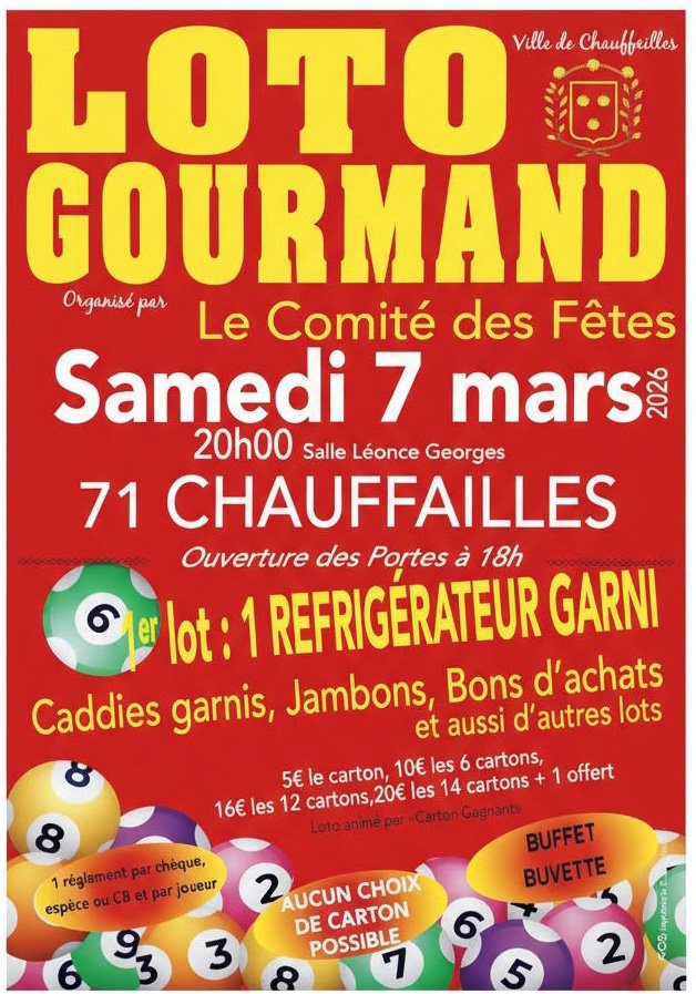 Organisé par le comité des fêtes organise un loto gourmand le dimanche 7 mars